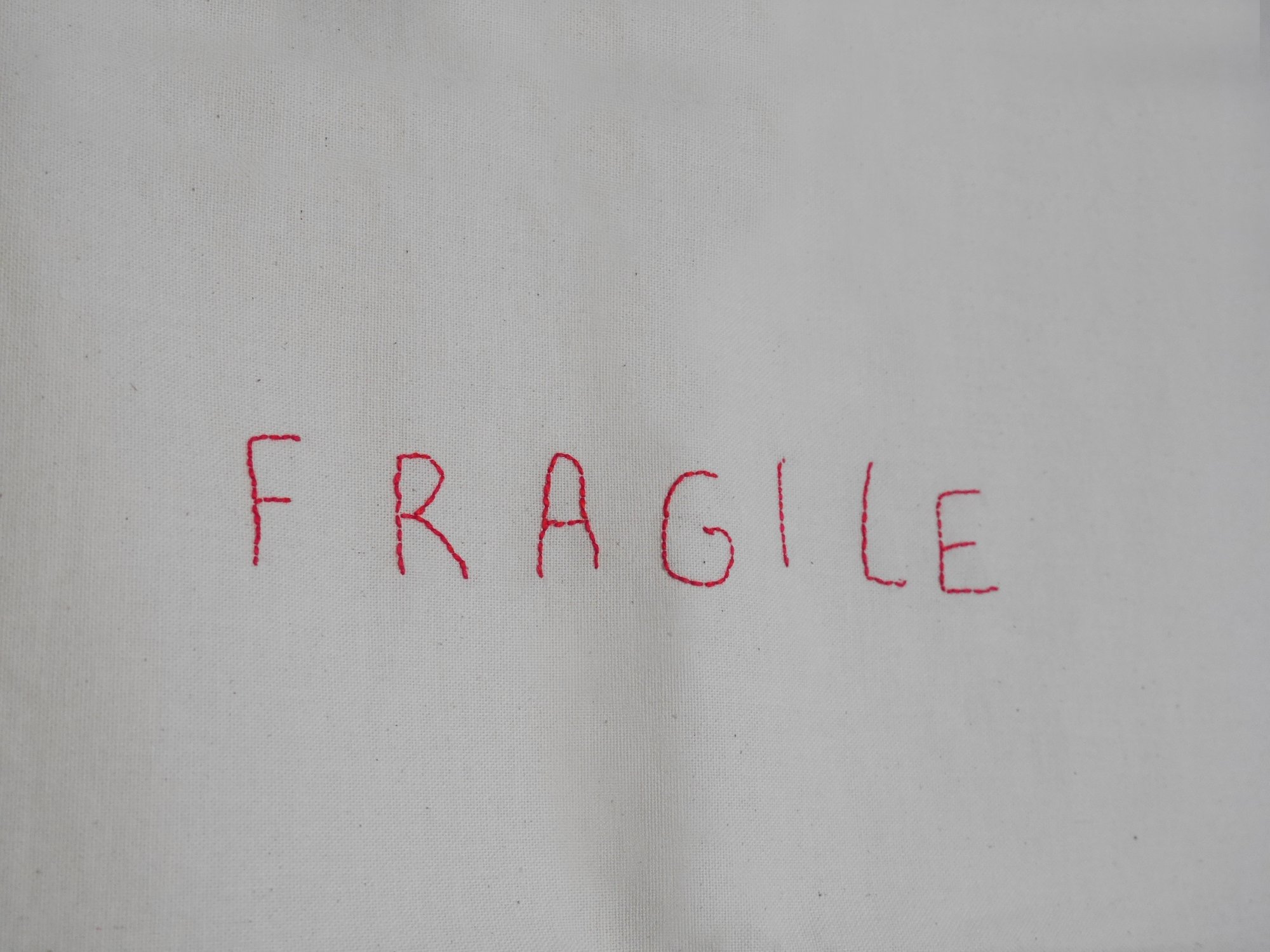 FRAGILE Hand Embroidered Organic Cotton Tea Towel