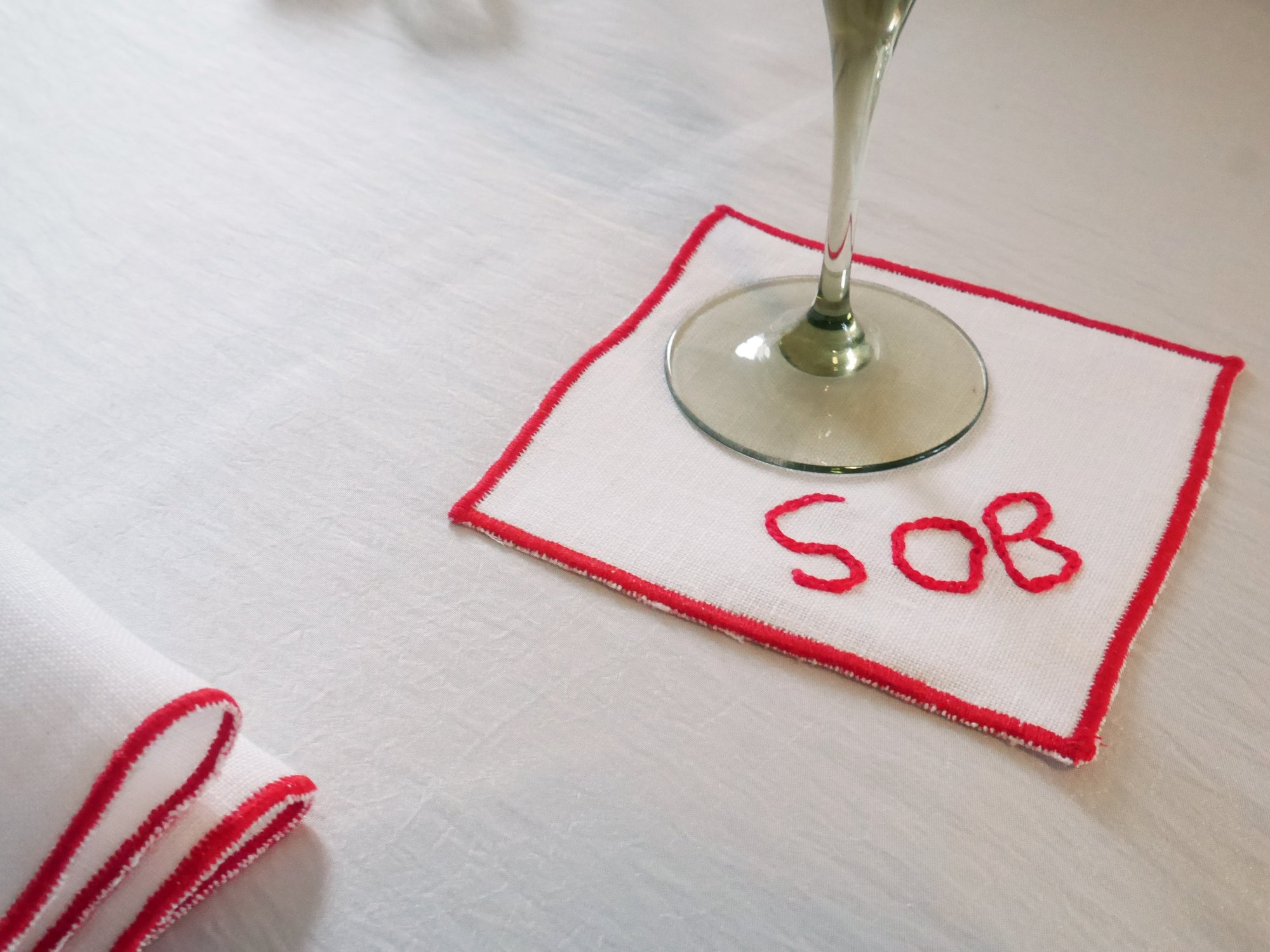 Hand Embroidered SOB Cocktail Napkins (Set of 4)